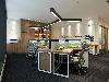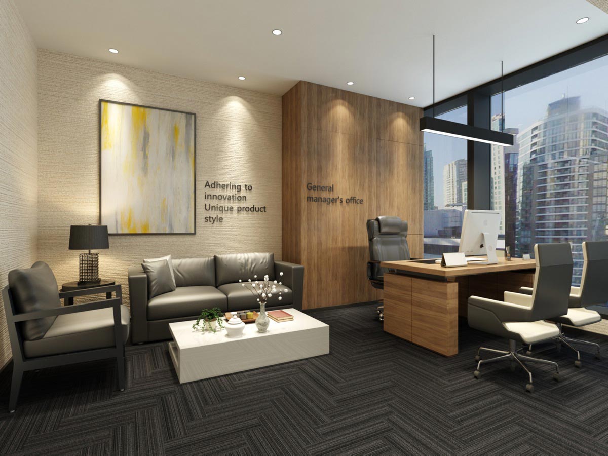 該公司的辦公室設計效果圖摒棄傳統的前臺,通過開放式的設計,讓前臺門面與接待融為一體,接待區用仿餐廳設計,加上燈光的點綴和中國風的掛畫,營造出文藝而又舒適的氛圍。其他辦公區域也同樣采用簡單的原木色家具,黃色與白色的搭配 整體色感趨于柔和,易于接近。
