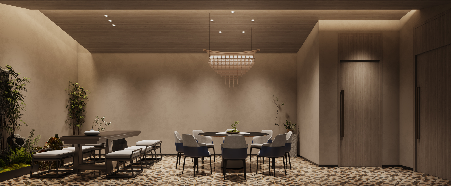茶園金地餐廳是一家新概念粵菜餐廳。其設(shè)計是鋪開的一幅宋代美學(xué)的空間畫卷,帶你步入宋代詩詞歌賦的文化意境。